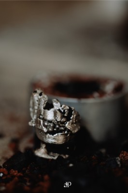 Structuren in mijn dagelijks leven, zoals een gebarsten tegel, een verroest stukje metaal, fascineren en inspireren mij. Dit weerspiegelt zich ook in mijn persoonlijkheid, ik ben iemand die het mooie ziet in alledaagse dingen. Vanuit een gietproces ontwerp ik juwelen. Ik laat mij leiden door het materiaal en speel met de mineralen en hun reactie op het contact met zilver. De leegtes die ontstaan zijn even interessant als de mineralen die wel aanwezig blijven.
