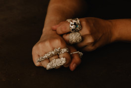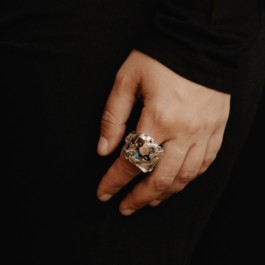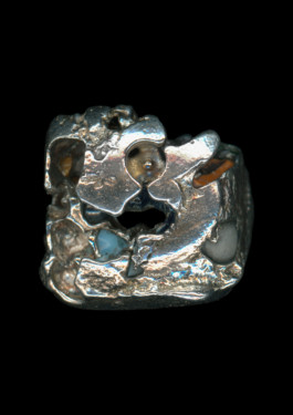 During casting, the beads burn and break. Only small fragments remain embedded in the ring. The traces they leave give the piece a raw and unique character. It's a reminder that something doesn't need to remain whole to leave a lasting impression.